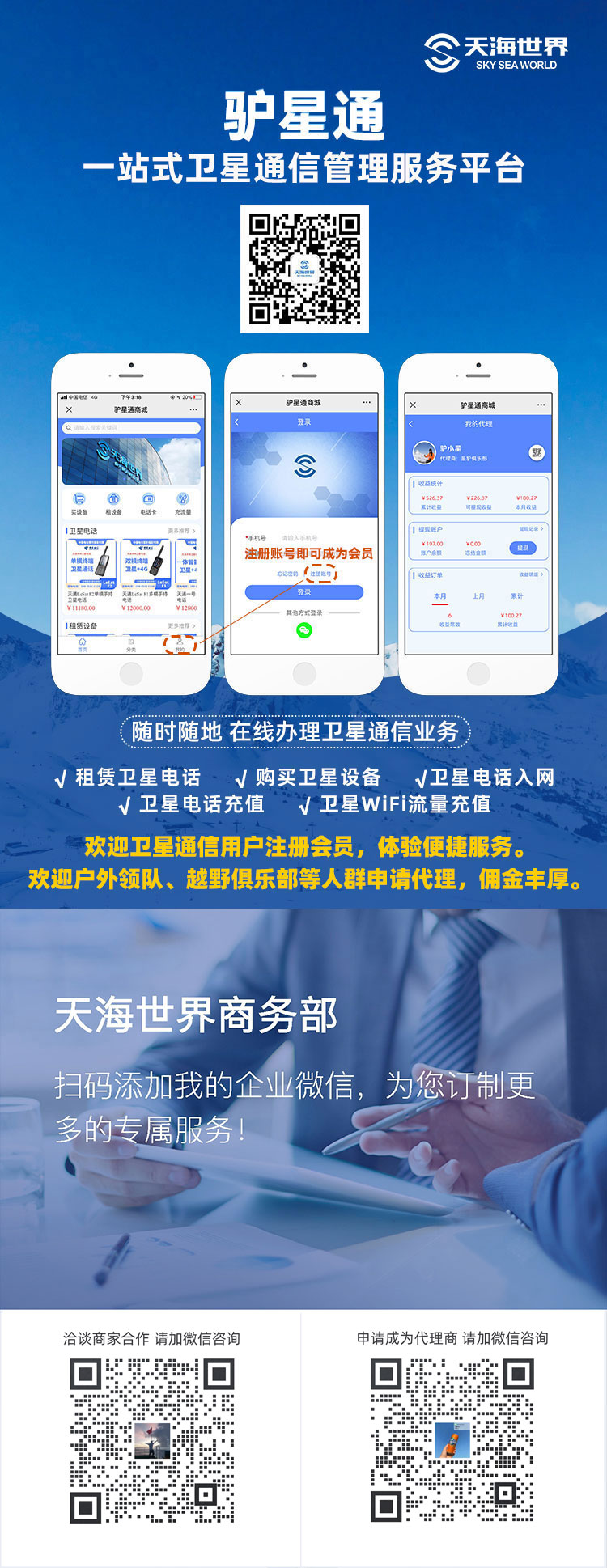 針對個(gè)人客戶的需求,通過“驢星通”平臺(tái)租賃或購買衛(wèi)星電話、衛(wèi)星上網(wǎng)設(shè)備等衛(wèi)星通信終端,無論海上或陸地,不同應(yīng)用場景下的衛(wèi)星通信用戶都可以隨時(shí)隨地、直通官方運(yùn)營商、在線辦理衛(wèi)星通信業(yè)務(wù)。