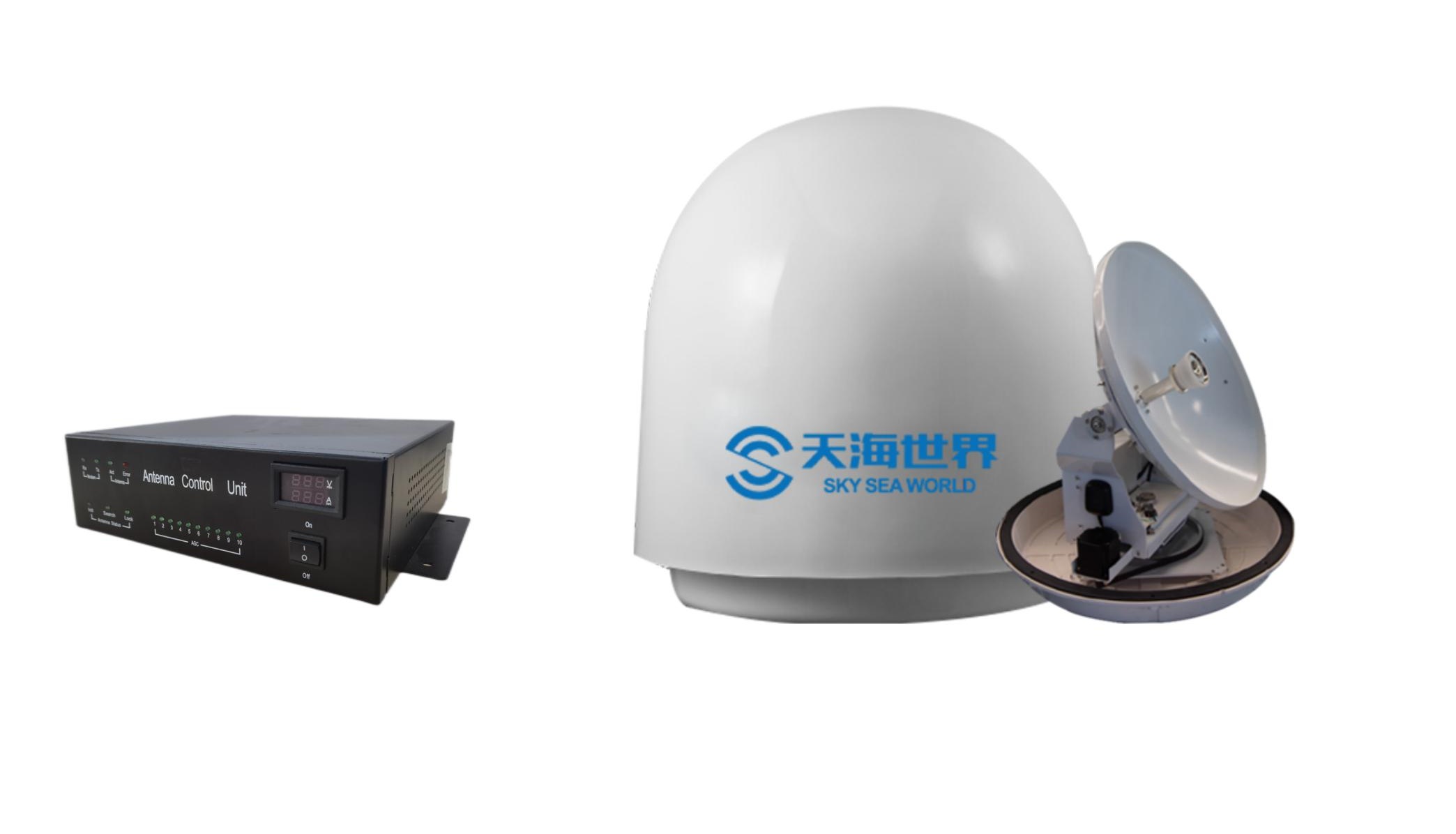 - 整合了衛(wèi)星天線、衛(wèi)星調(diào)制解調(diào)器、ACU天線控制單元、POE交換機(jī)、網(wǎng)關(guān)、和船載服務(wù)器。