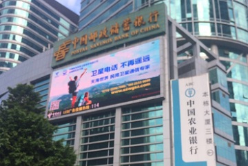 天海世界衛(wèi)星通信產(chǎn)品廣告登上信息樞紐大廈LED顯示屏