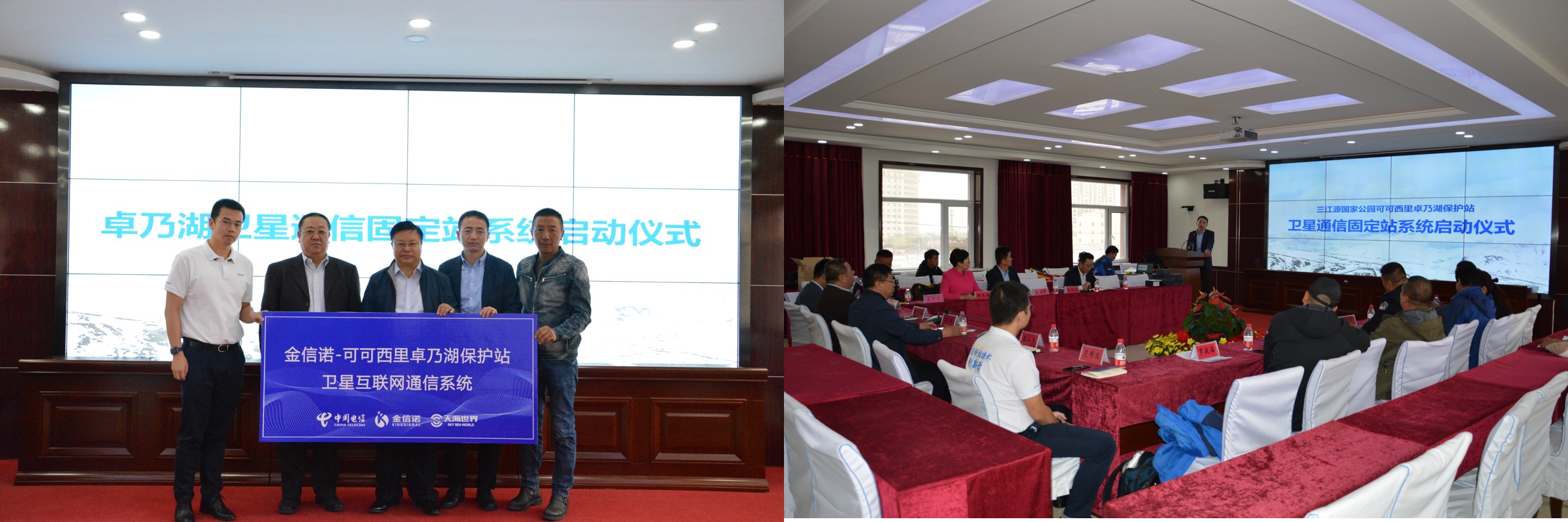 10月19日,在可可西里保護(hù)區(qū)管理局,舉行了一場(chǎng)簡(jiǎn)單而隆重的啟動(dòng)儀式,中國(guó)電信股份有限公司衛(wèi)星通信分公司呂俊俐總經(jīng)理、中國(guó)電信股份有限公司青海分公司唐小文總經(jīng)理、深圳金信諾高新科技有限公司無線與光網(wǎng)絡(luò)產(chǎn)品經(jīng)營(yíng)團(tuán)隊(duì)副總經(jīng)理范修遠(yuǎn)、深圳市天海世界衛(wèi)星通信科技有限公司邱志英總經(jīng)理、深圳星聯(lián)天通科技有限公司總經(jīng)理薛智軍等援建單位領(lǐng)導(dǎo)參加了此次卓乃湖衛(wèi)星通信固定站的啟動(dòng)儀式,在管理局現(xiàn)場(chǎng)通過衛(wèi)星通信與卓乃湖保護(hù)站的施工人員和巡山隊(duì)員進(jìn)行了視頻連線。此次中國(guó)國(guó)電信援建內(nèi)容還包括天通移動(dòng)衛(wèi)星電話、衛(wèi)星固定站及通信服務(wù),其中我國(guó)自主研發(fā)的衛(wèi)星移動(dòng)系統(tǒng)——天通衛(wèi)星首次引入可可西里,從此可可西里通信進(jìn)入“手機(jī)時(shí)代”。