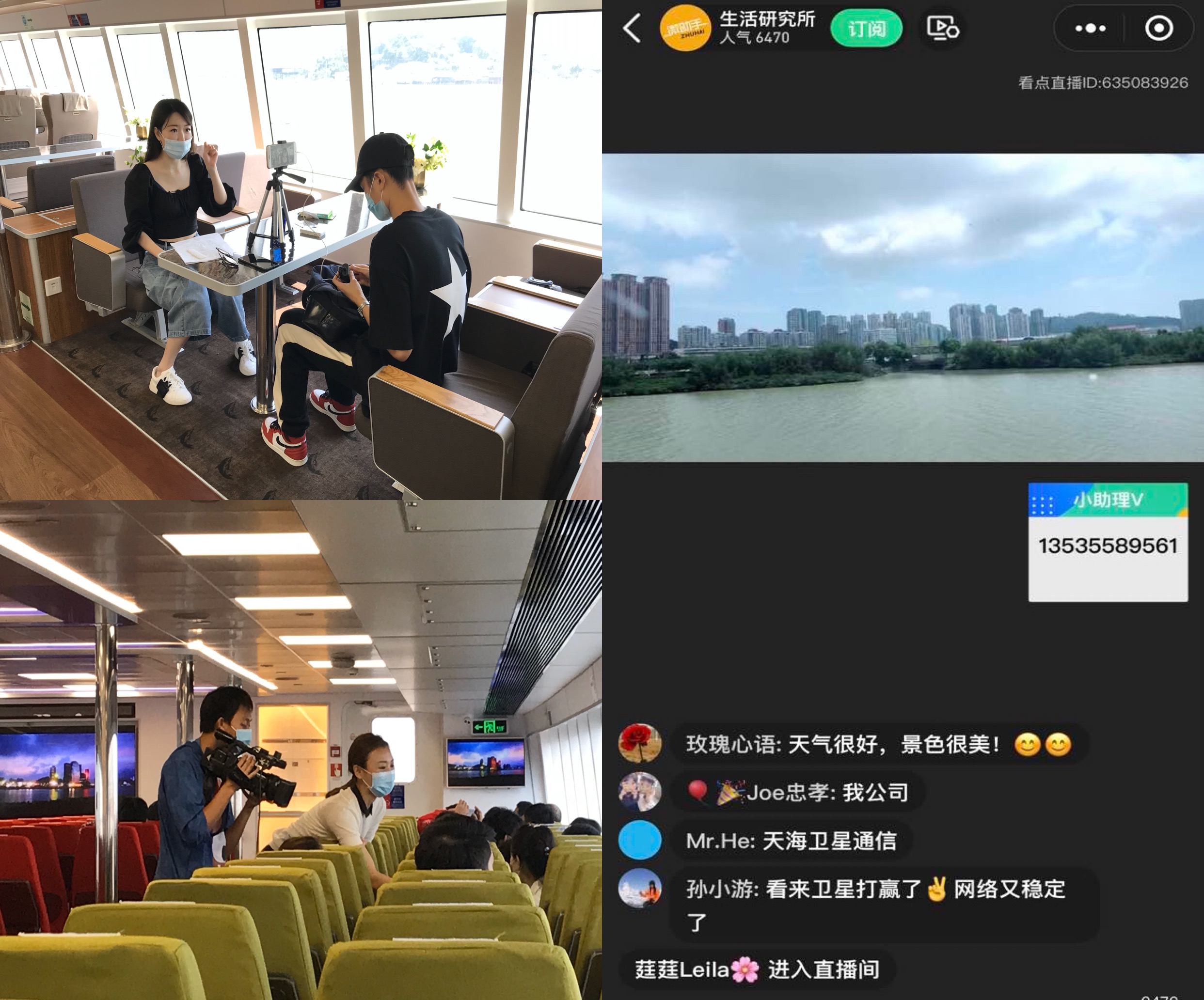 新航線開通吸引了大量媒體的關注,首航航班上就有深圳衛(wèi)視、鳳凰生活、香港商報等媒體的現(xiàn)場采訪,也有KOL主播全程直播。由于航程中傳統(tǒng)通信網(wǎng)絡的不穩(wěn)定,天海世界根據(jù)直播需求進行了全程衛(wèi)星互聯(lián)網(wǎng)技術支持和保障,在保證直播順利進行的同時讓乘客也可以感受穩(wěn)定流暢的衛(wèi)星互聯(lián)網(wǎng)體驗。